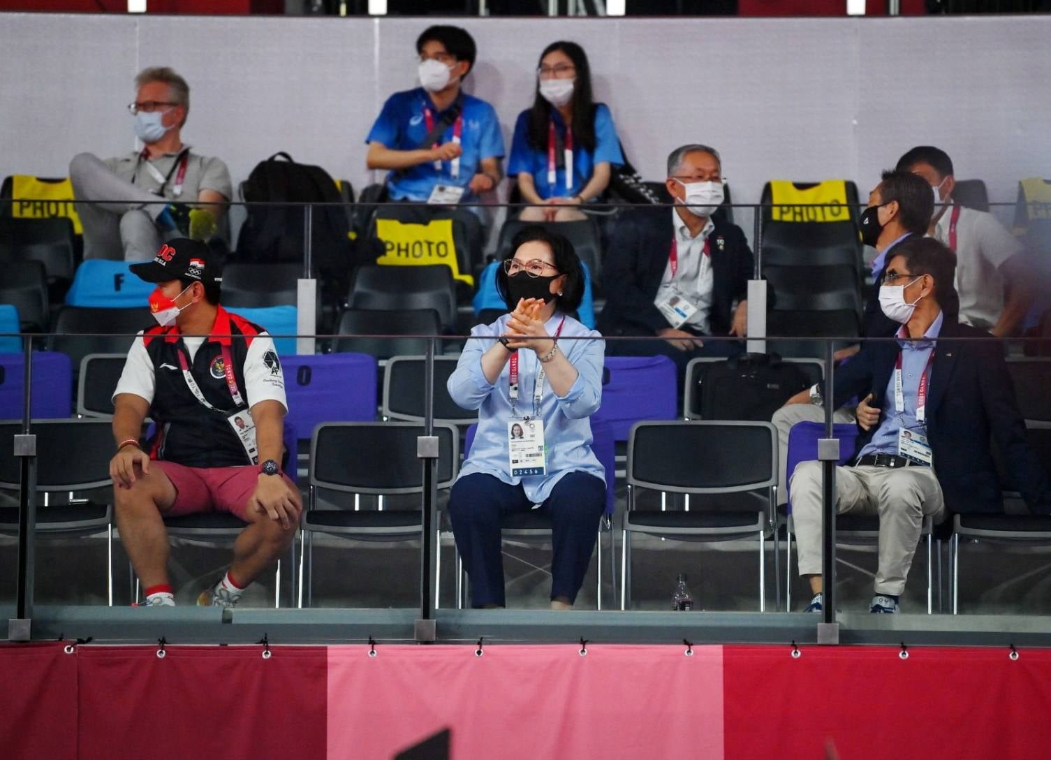 คุณหญิงปัทมา ลีสวัสดิ์ตระกูล กรรมการคณะกรรมการโอลิมปิกสากล (ไอโอซีเมมเบอร์) รองประธานสหพันธ์แบดมินตันโลก และ นายกสมาคมกีฬาแบดมินตันแห่งประเทศไทยฯ เปิดเผยหลังเกมการแข่งขันว่า “วันนี้ แบดมินตันหญิงเดี่ยว รอบ 8 คนสุดท้าย "เมย์" โคจรมาพบกับมือ 1 ของโลก ไต้ จืออิงจากไทเป โดยที่เกมแรก "เมย์" ทำได้อย่างยอดเยี่ยม มีสมาธิคอนโทรลเกมทั้งหมด บีบให้ ไต้จืออิง เล่นผิดพลาดเอง แล้ว"เมย์" หาจังหวะบุกทำแต้มทิ้งห่างจนปิดเกมแรกไปได้”