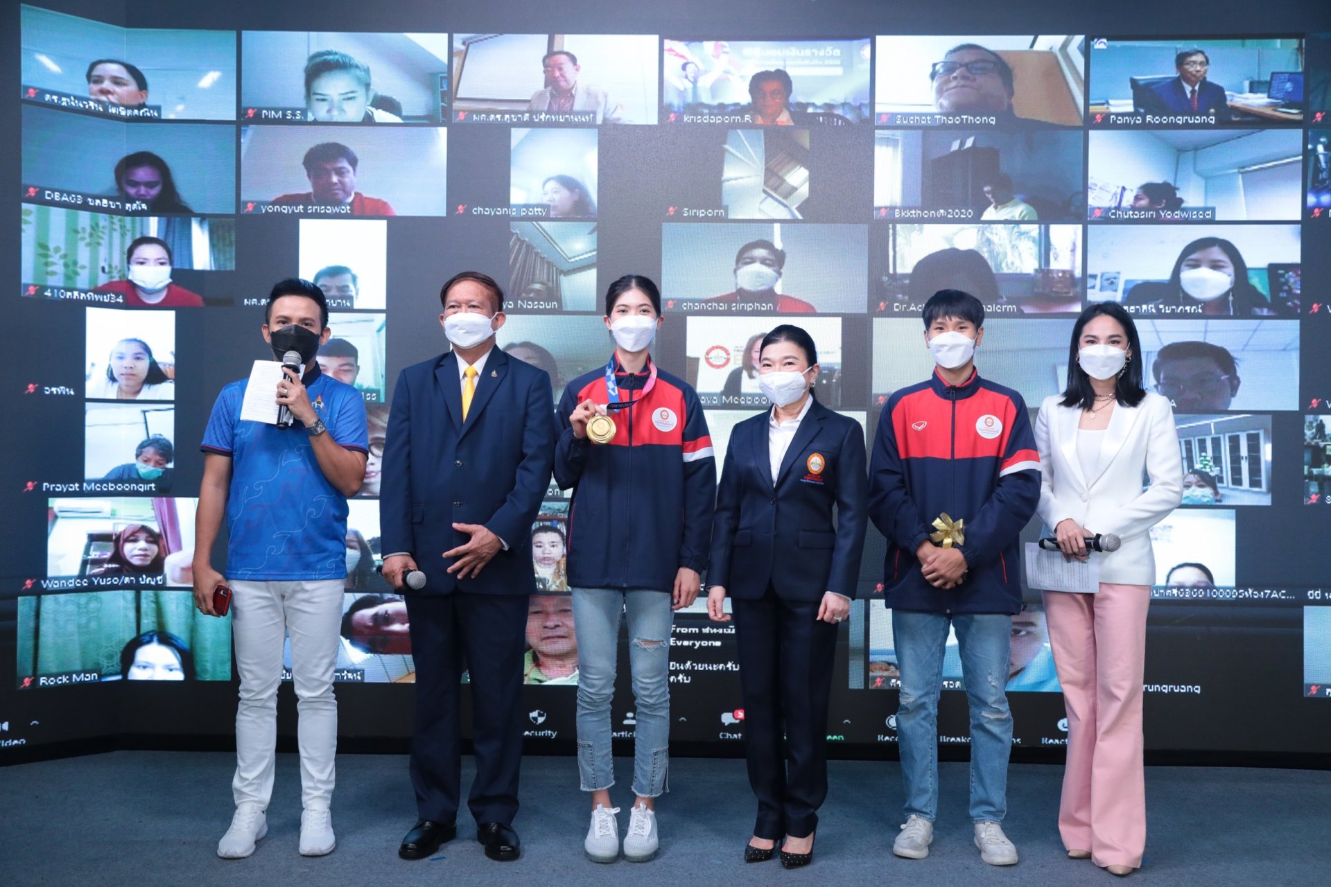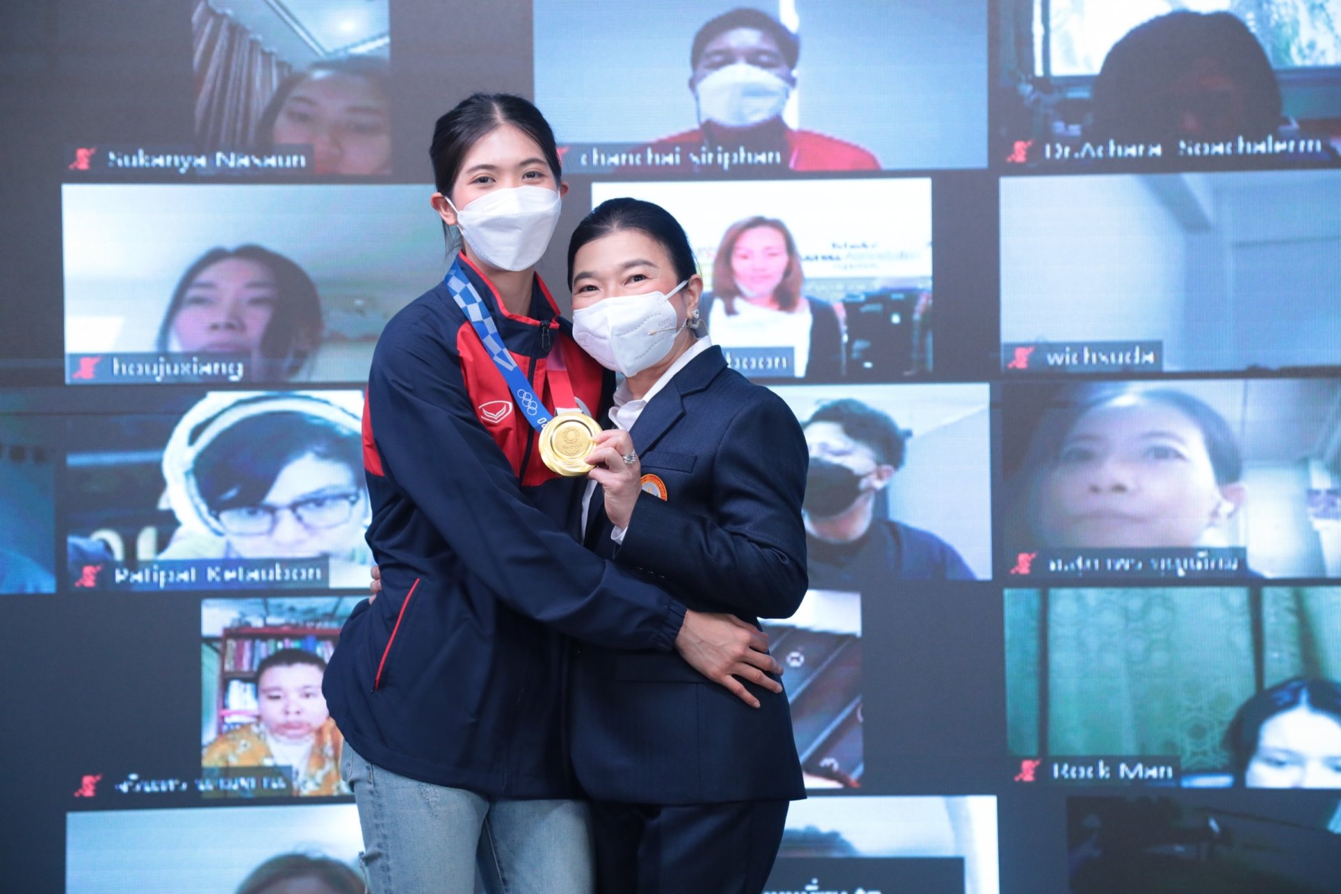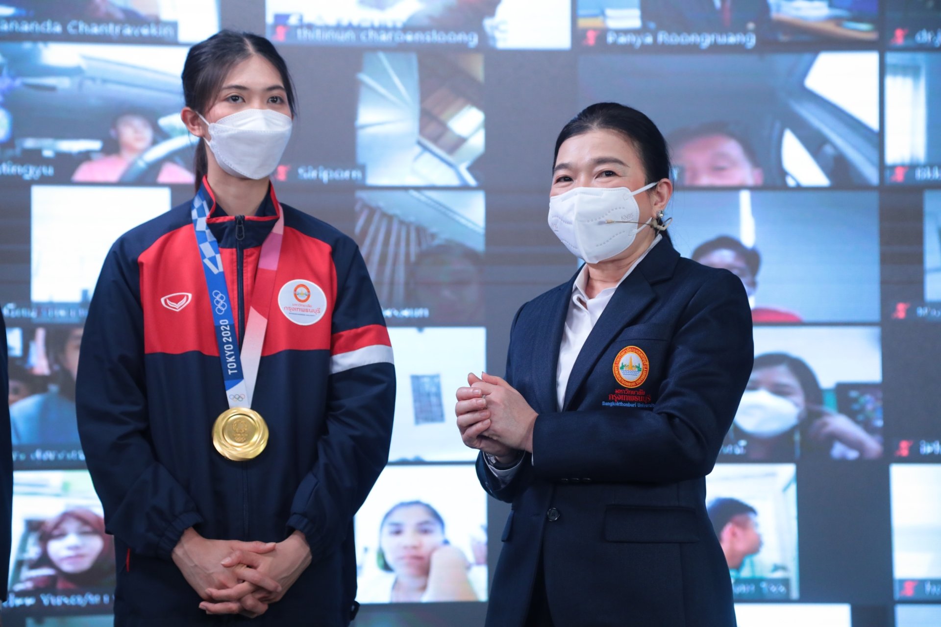 อธิการบดี กล่าวอีกว่า ในนามของชาวไทยคนหนึ่ง ต้องบอกว่ามีความยินดีอย่างที่สุดที่ “น้องเทนนิส” ได้สร้างชื่อเสียงได้ทำเหรียญทองโอลิมปิก 2020 ที่ประเทศญี่ปุ่นมาฝากชาวไทยในครั้งนี้ ในฐานะที่อธิการบดีเป็นอธิการมหาวิทยาลัยกรุงเทพธนบุรี และ “น้องเทนนิส” เรียนในหลักสูตรปริญญาโท รัฐประศาสนศาสตรมหาบัณฑิต พวกเราชาวมหาวิทยาลัยกรุงเทพธนบุรี และสถาบันในเครือฯ ต้องบอกว่าที่สุดฃองความภาคภูมิใจ “น้องเทนนิส” ก็ถือว่าเป็นลูกสาวคนหนึ่งที่ได้ประสบความสำเร็จอย่างยิ่งใหญ่ อันนี้คือ ฮีโร่เหรียญทองของเราในการแข่งขันโอลิมปิก 2020 ที่ผ่านมา