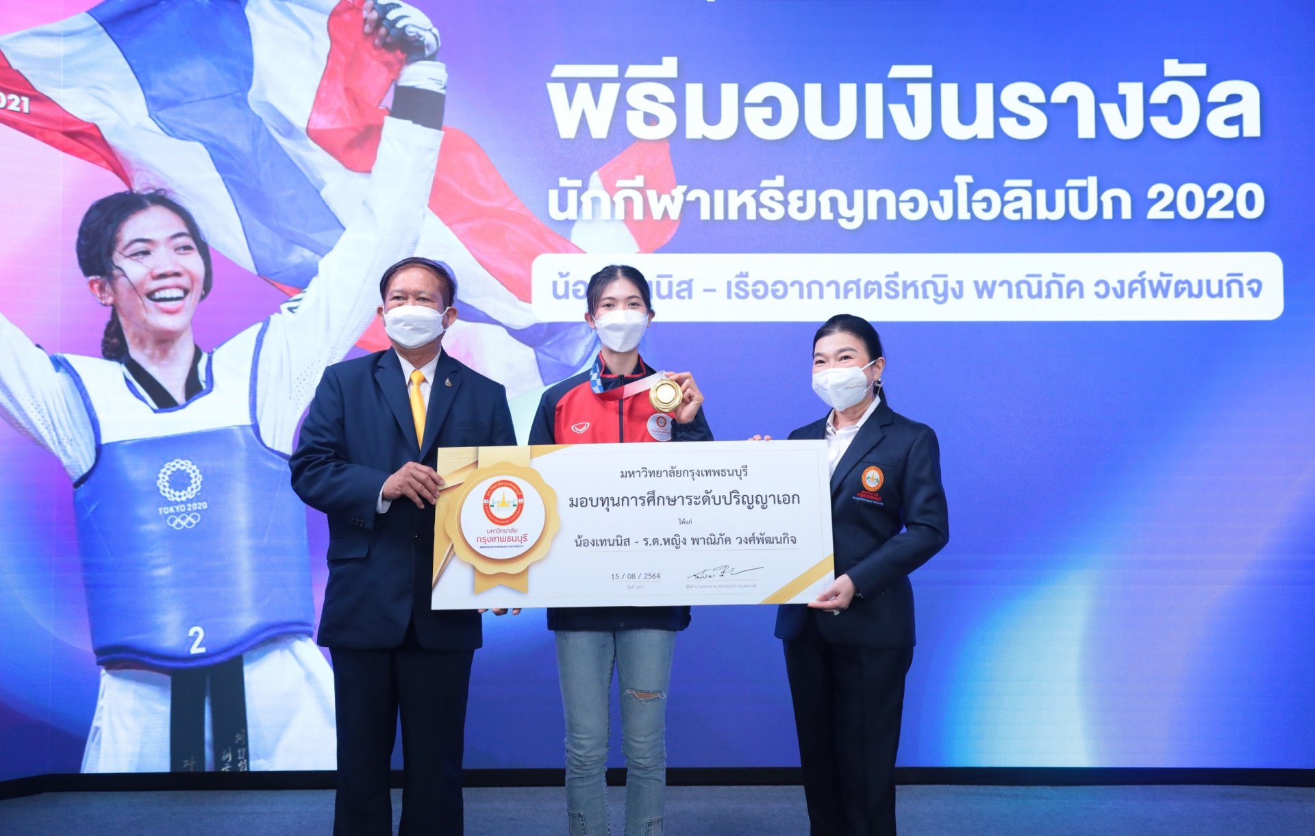 รศ.ดร.บังอร เบ็ญจาธิกุล อธิการบดีมหาวิทยาลัยกรุงเทพธนบุรี มอบเงินรางวัลจำนวน 1 ล้านบาท และมอบทุนการศึกษาระดับปริญญาเอกให้แก่ “น้องเทนนิส” เรืออากาศตรีหญิง พาณิภัค วงศ์พัฒนกิจ พร้อมกล่าวชื่นชมในความสำเร็จของ “น้องเทนนิส” ด้านการกีฬา ซึ่งการมอบรางวัลดังกล่าว เพื่อเป็นขวัญกำลังใจที่ได้รับรางวัลเหรียญทองกีฬาเทควันโดจากการเข้าร่วมแข่งขันกีฬาโอลิมปิกเกมส์ 2020 ครั้งที่ 32 ประเทศญี่ปุ่น และถือเป็นการสร้างชื่อเสียงเกียรติประวัติให้แก่ครอบครัว ประเทศชาติ และมหาวิทยาลัยฯ ในฐานะที่ “น้องเทนนิส” เป็นนักศึกษาระดับปริญญาโท มหาวิทยาลัยกรุงเทพธนบุรี