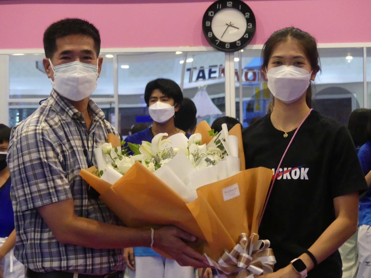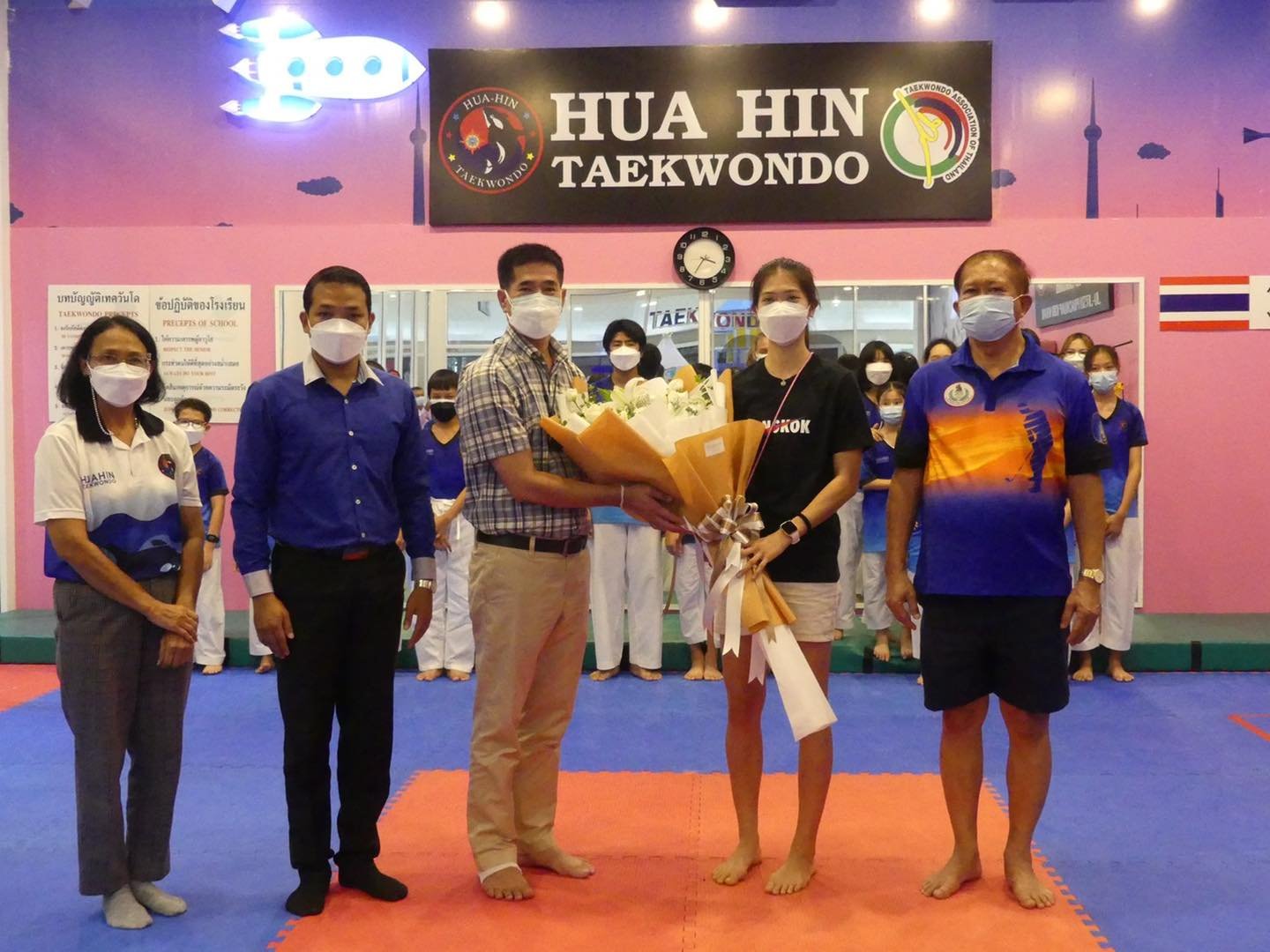 นายกหนุ่ย นายนพพร วุฒิกุล นายกเทศมนตรีเทศบาลเมืองหัวหิน และทีมงานให้การต้อนรับ น้องเทนนิส (พาณิภัค วงศ์พัฒนกิจ) นักกีฬาเหรียญทอง เทควันโด โอลิมปิก 2020 คนล่าสุด และได้นำช่อดอกไม้ เพื่อชื่นชมและแสดงความยินดีกับ น้องเทนนิส ที่ได้สร้างความความภูมิใจให้กับคนไทยทั่วประเทศ