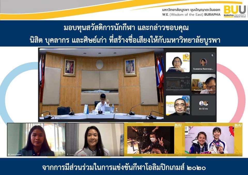 ผู้ช่วยศาสตราจารย์ ดร.นฤพนธ์ วงศ์จตุรภัทร คณบดี คณะวิทยาศาสตร์การกีฬา ม.บูรพา เผยถึงความภูมิใจ ที่ทางมหาวิทยาลัยฯ ได้จัดพิธีมอบรางวัลให้กับนิสิต ที่สร้างชื่อเสียงให้แก่ประเทศไทยและมหาวิทยาลัยบูรพา แบบออนไลน์ ในการประชุมกรรมการบริหารมหาวิทยาลัยบูรพา เมื่อวันที่ 7 กันยายน 2564