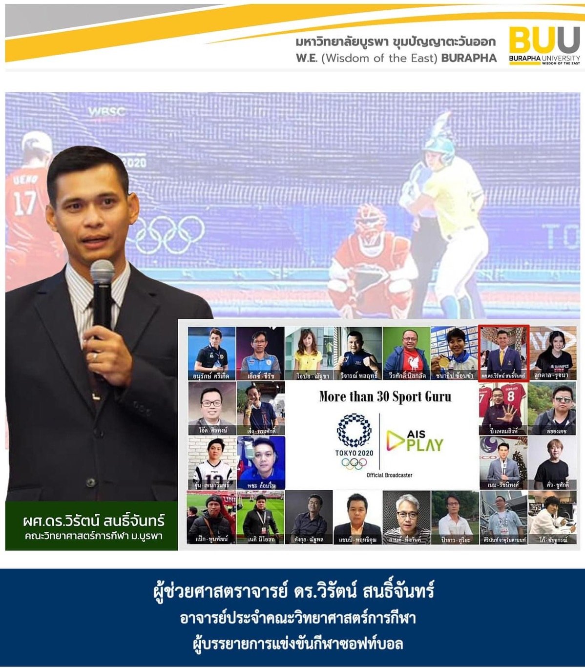 1 ผู้ช่วยศาสตราจารย์ ดร.วิรัตน์ สนธิ์จันทร์ อาจารย์ประจำคณะวิทยาศาสตร์การกีฬา ในคณะผู้บรรยายการแข่งขันกีฬาซอฟท์บอล