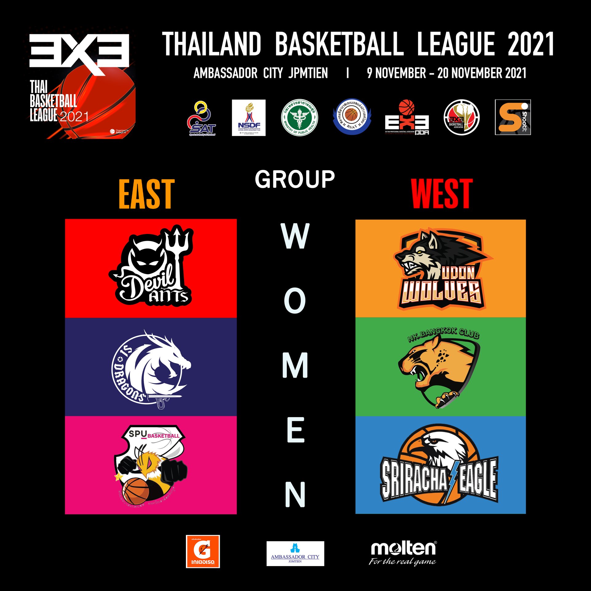 ทีมหญิง Group East ประกอบด้วย DAVIL ANTS SILPAKORN, SHOOT IT DRAGONS และ SPU BASKETBALL