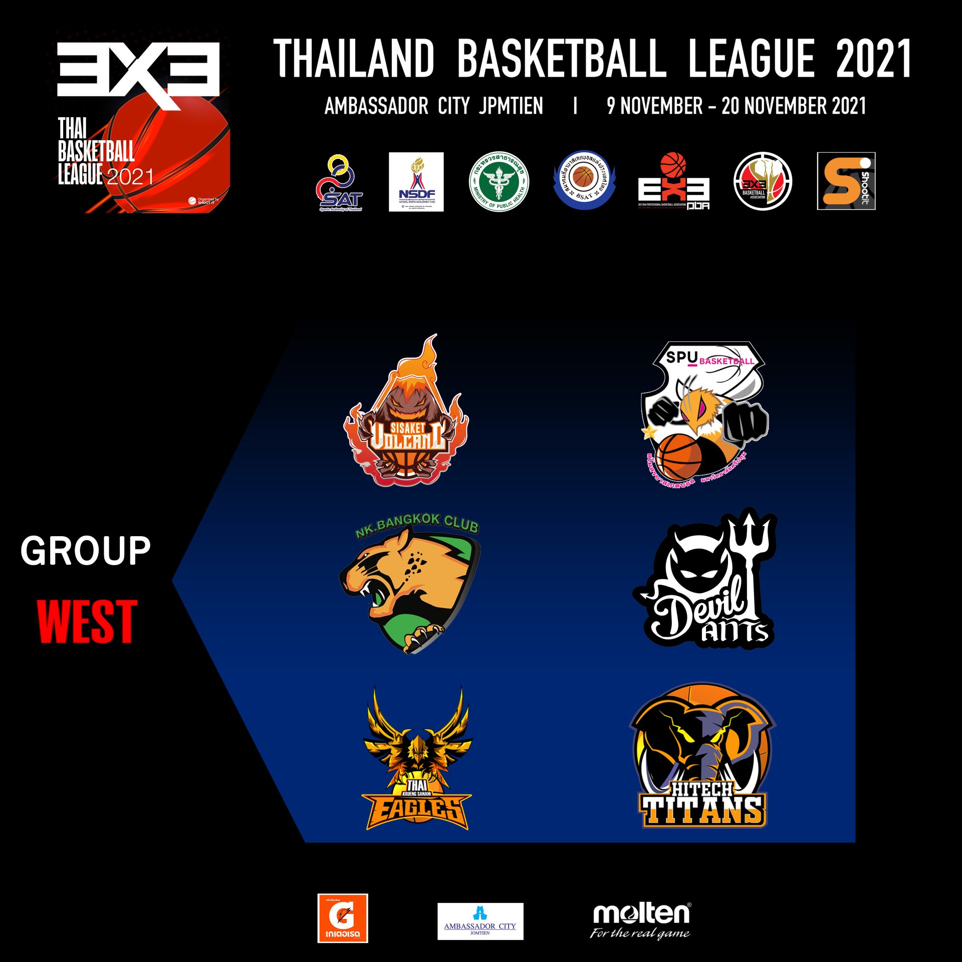 ทีมชาย Group West ประกอบด้วย SISAKET VOLCANO, SPU BASKETBALL CLUB, NK BANGKOK CLUB, DAVIL ANTS, THAI KRUENG SANAM EAGLES และ HITECH TITANS
