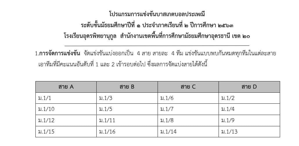 อุดรพิทย์ ปลูกฝังบาส สตาร์ท ม.1 บาสประเพณี