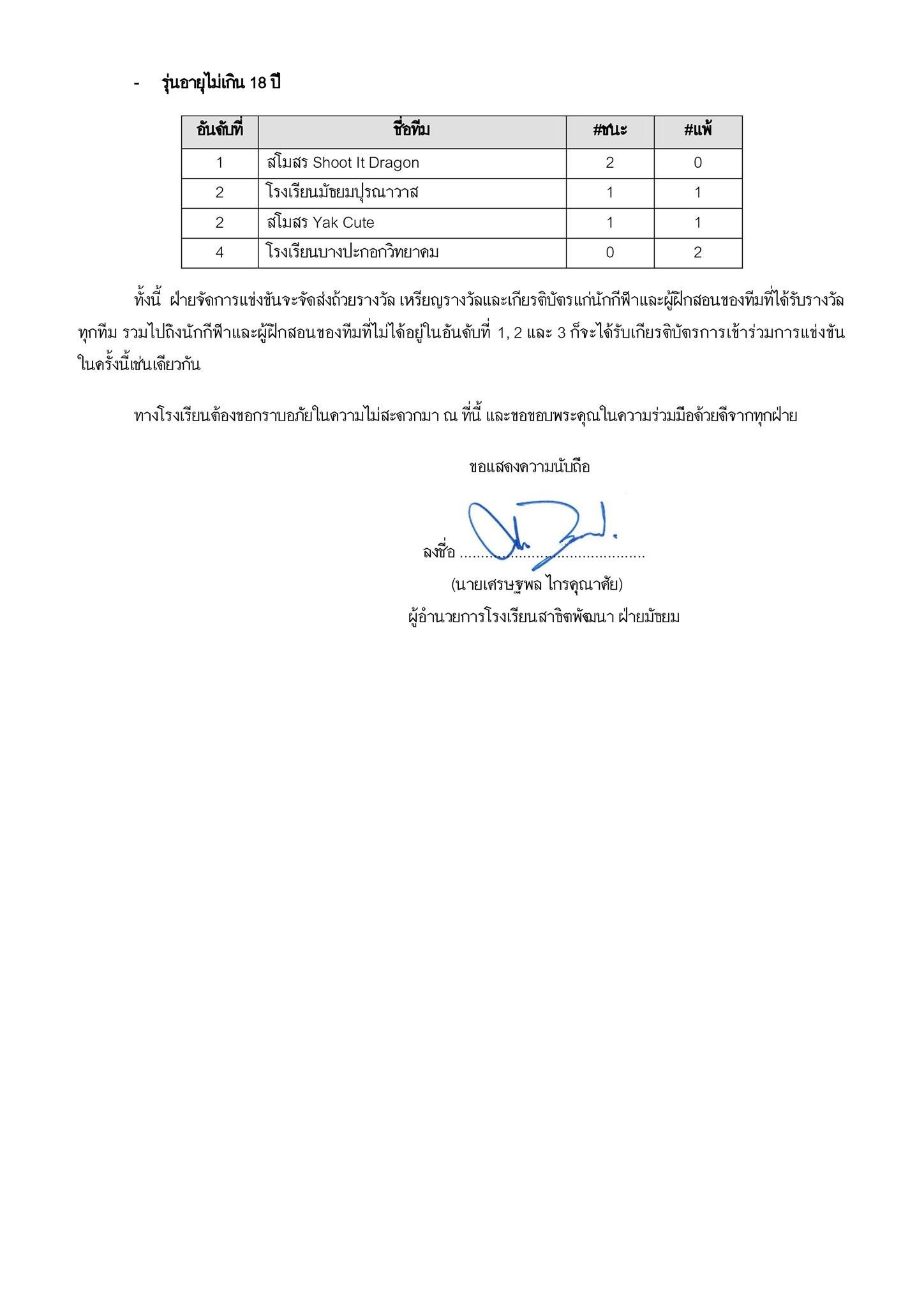 อันดับ 1 ได้แก่ สโมสร Shoot It Dragon